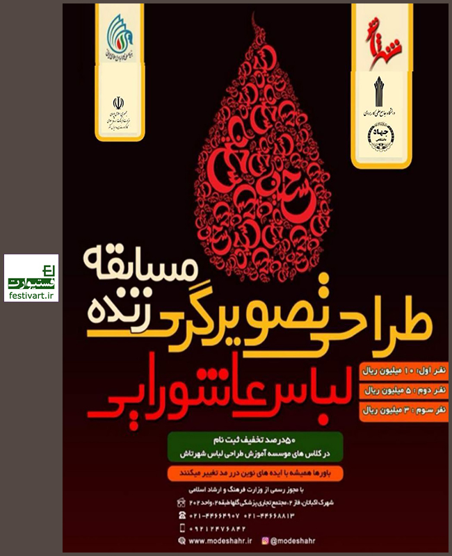 به نقل از روابط عمومی دانشگاه جامع علمی کاربردی، با حمایت کارگروه ساماندهی مد و لباس دانشگاه جامع علمی کاربردی، دور اول مسابقه زنده طراحی لباس براساس نمادهای عاشورایی دوشنبه دوازدهم شهریور ماه در محل مرکز علمی کاربردی جهاد دانشگاهی تهران 4 برگزار می شود.