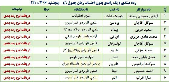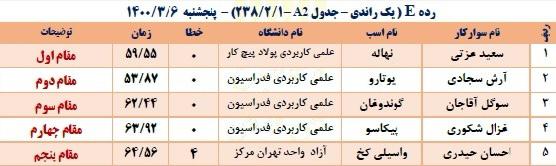در پایان این مراسم اختتامیه نتایج اولین دوره مسابقات پرش با اسب دانشجویى دانشگاه های تهران و البرز، جوایز برگزیدگان در هر سه رده مسابقات به شرح زیر اهداء شد: