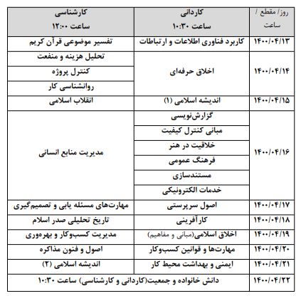 زمان برگزاری آزمون دروس مشمول آزمون متمرکز نیم سال دوم ۱۴۰۰-۱۳۹۹ دانشگاه جامع علمی کاربردی اعلام شد
