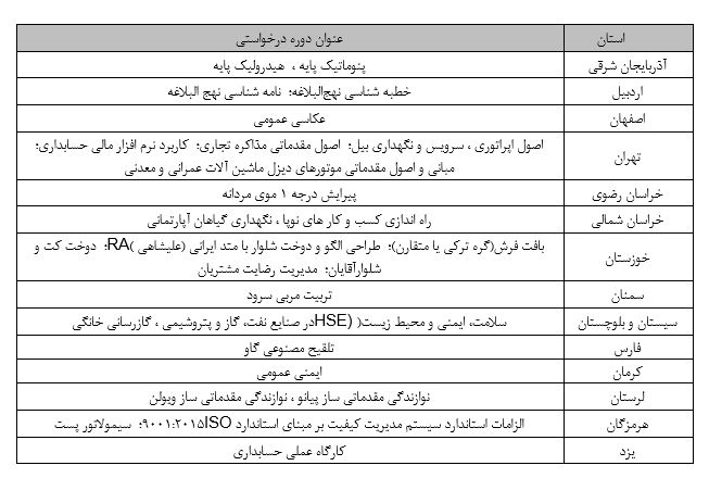 مجوز اجرای ۲۶ عنوان دوره آموزش کوتاه مدت علمی کاربردی تقاضا محور صادر شد.