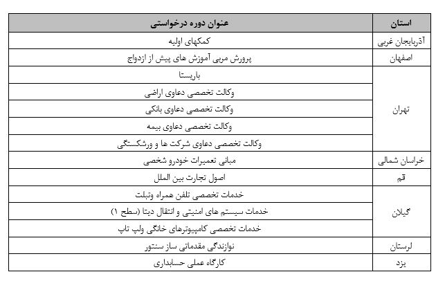 مجوز اجرای ۱۴ عنوان دوره آموزش کوتاه مدت علمی کاربردی تقاضا محور صادر شد.