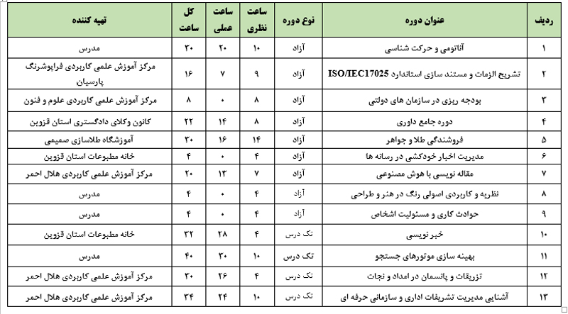 13 دوره جدید درسی کوتاه مدت در هفتمین جلسه کمیسیون برنامهریزی درسی دانشگاه جامع علمی کاربردی استان قزوین تصویب شد.